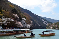山は春の桜、秋の紅葉など、雄大な自然が魅力の景勝地。桜の満開時(shí)には、山全體が薄紅色に染まり、スケールの大きな桜景色をみせる。この景観を、嵐山のシンボル的な存在の渡月橋と桂川越しに見渡すのがオススメだ。
