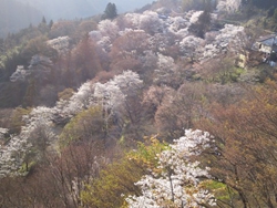 世界遺産として知られる吉野山では、シロヤマザクラを中心に約200種3萬本の桜が下千本?中千本?上千本?奧千本の4箇所に密集しており、4月初旬から末にかけて、最も標(biāo)高の低い下千本から開花してゆく。下千本では七曲り坂や下千本展望所から一日千本の光景が楽しめる。また夜はライトアップされ、幽玄な世界をみせてくれる。