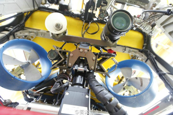 水中ロボットは通常、有索式無人潛水機(ROV)と自律型無人潛水機(AUV)に分かれる。中國海洋石油報の公式微博(ウェイボー)「図説海油」はこのほど、海洋石油掘削プラットフォーム「海洋石油981」のROVの畫像を投稿した。(編集YF)