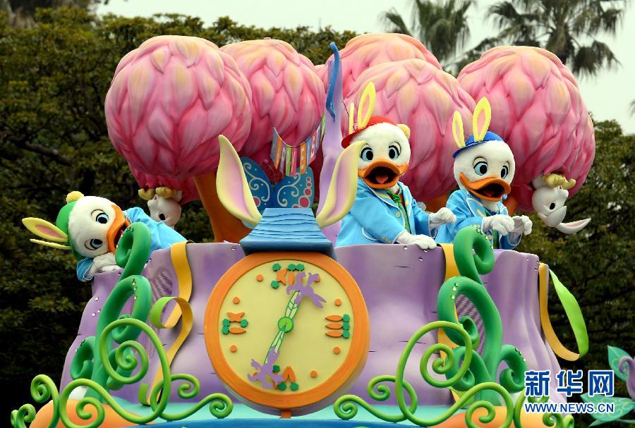 寫真は日本?東京ディズニーランドで1日、パレードをしているキャラクターたち。日本?東京ディズニーランドでは同日、春のパレードが行われた。新華網(wǎng)が伝えた。(編集YH)
