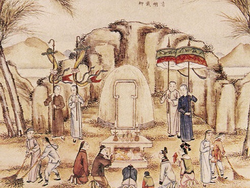 この時(shí)節(jié)は、雨が次第に多くなる。親に仕える道を重視する中國(guó)人は、「生者に仕える如く死者にも仕える」という考え方から出発し、墓を先祖が地下に住んでいる場(chǎng)所と見なし、雨季が到來(lái)する前の清明の季節(jié)にはまず、風(fēng)雨に一年間さらされてきた墓を修復(fù)、整理し、草を刈り、土を盛らなければならない。そして供物を並べて禮拝し、先祖にご加護(hù)と平安を祈るのだ。