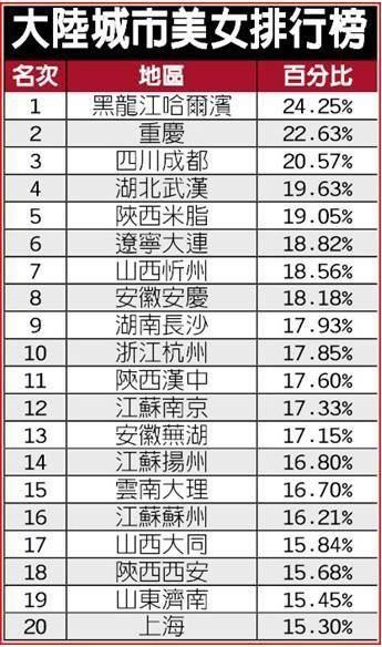 中國大陸のネットユーザーが投票した「2014年度中國大陸美女都市別ランキング」が発表され、ネット上で熱い議論が巻き起こっている。ランキングの上位3位は、1位黒竜江省哈爾浜(ハルビン)、2位重慶市、3位四川省成都市だった。この結(jié)果を受け、「実力通り」「ハルビンの女性はスタイルが良く、重慶の女性は肌がきれいで、成都の女性は特別な雰囲気がある」というコメントを投稿する人が少なくなかった。一方、自分の故郷の名前がランキングの投票リストに入っていないとして、「科學(xué)的なランキングではない」と不満の聲を上げる人も多かった。同ランキングは、あくまでも女性の外見のみを比較したもので、他の要素は含まれていないという。(編集MZ)
