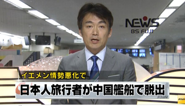 日本の各大手テレビ局は中國(guó)軍艦による自國(guó)民の避難について放映した。