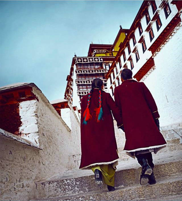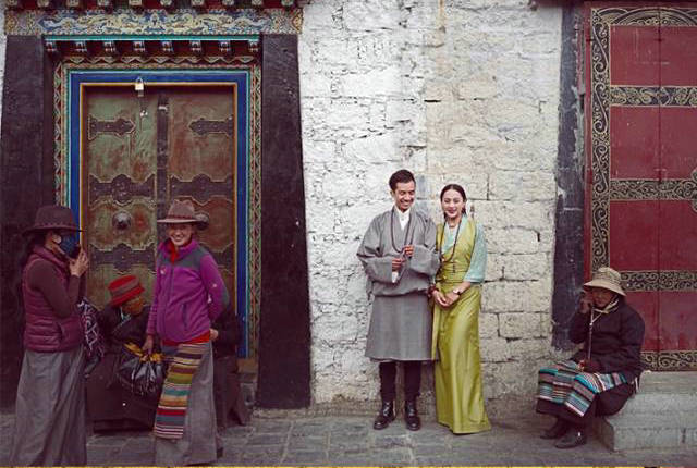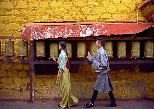 このチベット族の「80後」(1980年代生まれ)新婚カップルの結(jié)婚記念寫真が注目を集めたのは、2人の容姿が端麗なだけでなく、寫真が都市での生活と高原での遊牧生活の下で完全に異なるチベット族の若者2人の生活の情景を捉えているためだ。高原の谷間と都市のビル街、一方はマニ車や牛、望樓、もう一方はカフェや高級(jí)車、遊園地だ。同じチベット族の青年男女が、伝統(tǒng)的な民族衣裝を著ると獨(dú)特の生活習(xí)慣を持つチベット族の代表となり、おしゃれなファッションにサングラス姿だと、たちまち現(xiàn)代的なおしゃれな若者に変身する。(編集YH)