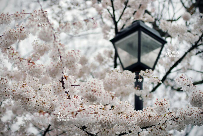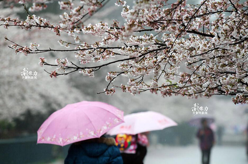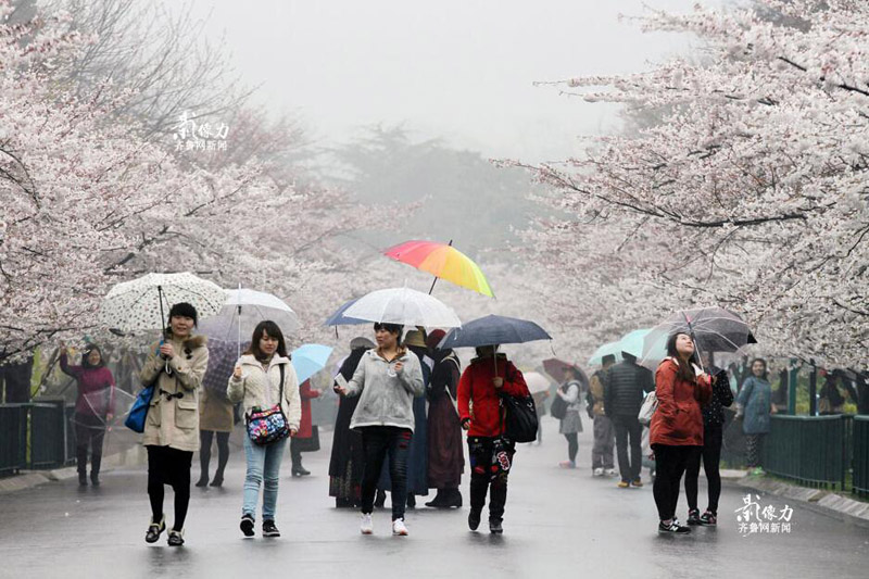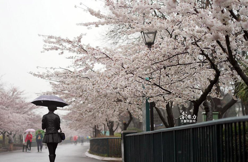 山東地域では13日、広い範(fàn)囲で雨が降った。気溫は低下したものの、雨は春の黃砂が飛びやすい空気に潤いを與えている。青島市中山公園では雨の後の桜の花が濕気の高い空気の中で競って開花した。長さ660メートルにおよぶ満開の桜並木が雨の中で、童話の世界のような美しい姿を見せ、多くの観光客が訪れて寫真を撮影した。斉魯網(wǎng)が伝えた。(編集YH)