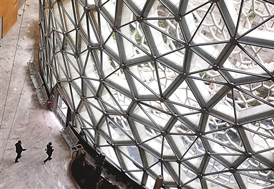 上海自然博物館新館の外壁。細胞を模したくりぬき構(gòu)造のデザインで、自然の生命が単細胞生物から多細胞生物へと進化する過程を表現(xiàn)している。