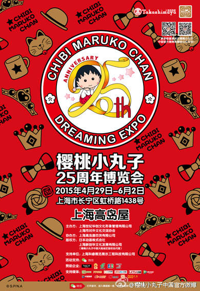 「ちびまる子ちゃん」の中國公式ミニブログによると、大人気の日本アニメ「ちびまる子ちゃん」が放送開始25周年を迎えるため、4月29日から中國·上海市にある高島屋で「ちびまる子ちゃん」25周年特展を開く見込みだ。