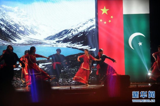 中?パ友好交流年開始式で伝統(tǒng)舞踴を披露するパキスタンの舞踏家(2015年2月12日撮影)。