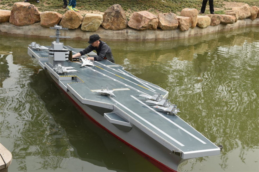 河南省航海運動ステーションの指導(dǎo)員である侯偉氏によると、この模型は進水?航行可能な國內(nèi)最大の空母模型だ。電力駆動を採用し、航続時間は2時間。制作費は10數(shù)萬元(1元は約19.3円)、制作期間は2年。今回、初の進水、ミサイル発射のシミュレート、ラジコン機の離著陸に成功した。(編集YF)