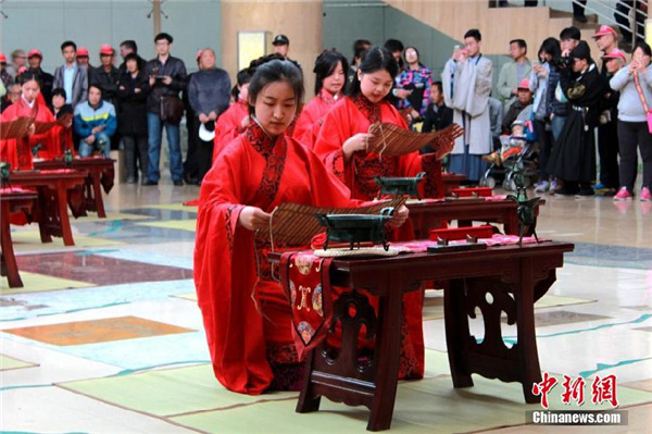 舊暦3月3日は、中國古來の伝統(tǒng)的祝祭日「上巳節(jié)」で、「女児節(jié)」(雛祭り)とも呼ばれている。湖南省洪江市では、舊暦3月3日にあたる4月21日に、雛祭りのイベントが行われ、14歳~24歳の若い女性1000人が伝統(tǒng)的な漢服を身に著け、古代の風習に従って宣誓を行う厳かな成人式を體験した。人民網が伝えた。(編集MZ)