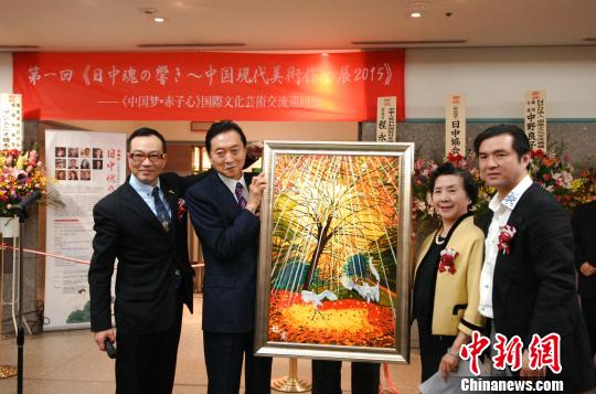 鳩山由紀(jì)夫元首相に絵を贈(zèng)る趙青氏