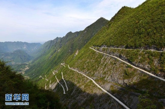 寫真は22日に撮影された湖北省恩施市の「天路」。湖北省西部山間部の恩施市には深山の「天路」と呼ばれる有名な道路がある。新華社が伝えた。