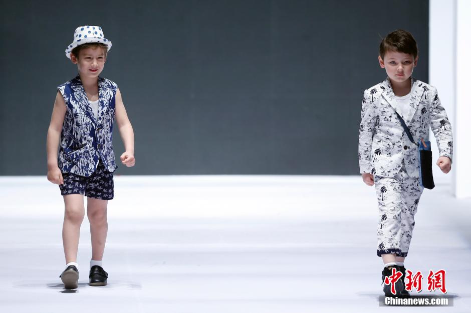 寫真は26日、舞臺(tái)の上で青島の有名子供服ブランド亀竜のファッションを披露する子どもモデル。同日、「英倫風(fēng)尚之花児&少年」亀竜子供服2015年-2016年ブランド発表會(huì)が2015年(青島)國際ファッションウィークに登場した。中國新聞網(wǎng)が伝えた。(編集YH)