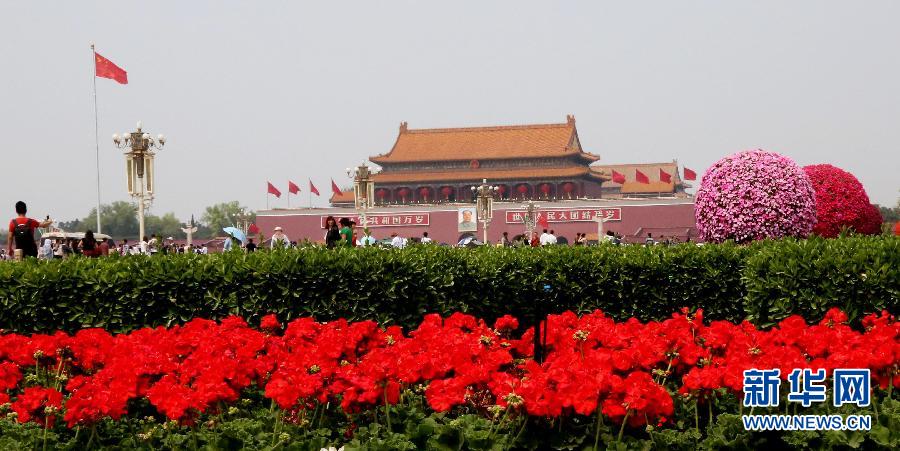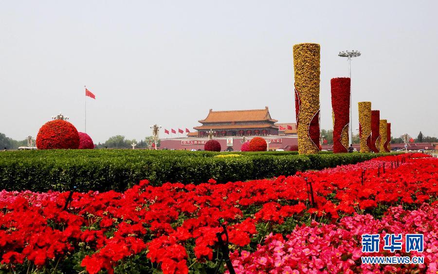 赤い花が咲き誇るメーデーの天安門(mén)広場(chǎng)