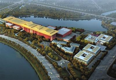 建物の外観は、紫禁城と同様な金色と赤色が使用される。メインの建物は中國の古典建築に見られる屋根、屋身、基壇の3つの部分からなる「三段式」の構(gòu)造を採用している。金色の屋根の建物の下には、屋身である赤い壁に囲まれた展示空間が広がっている。全體の建物の南側(cè)は池に面し、北側(cè)は山に連なっている。金色の屋根の建物は一つの軸線を形成する。軸線は、故宮の中軸線の太和門や三大殿までの尺度から取り出したもので、完全に土臺の境界に沿っている。建築全體の中心としての役割を果たし、主要展示場の基本的な陳列も中軸上に置かれる。