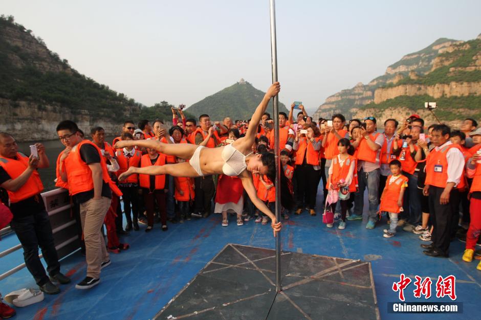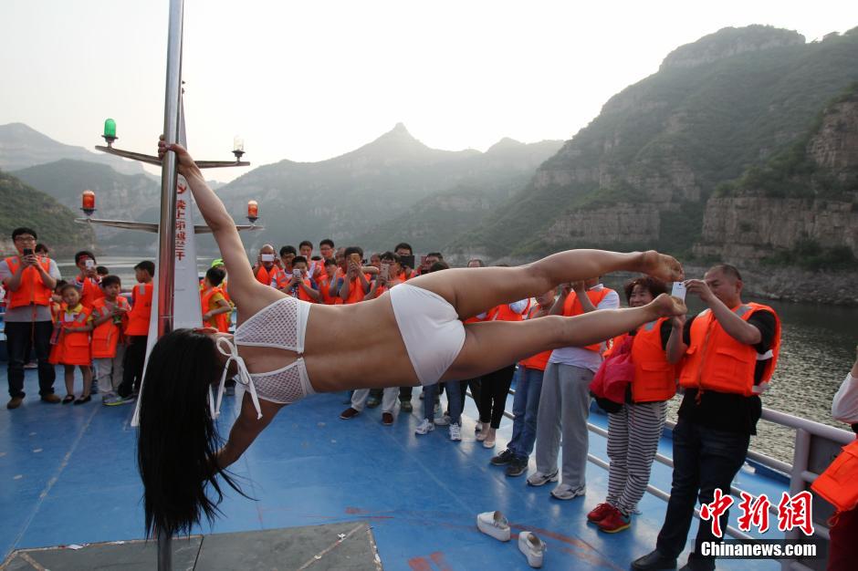 河南省済源市の黃河三峽では2日、「90後」(1990年代生まれ)のポールダンサー、劉飛飛さんが黃河のフェリーの上でビキニ姿で高度な技を披露した。同日、航行中の黃河フェリーの甲板の上で彼女はビキニ姿でセクシーなポールダンスを披露し、乗客たちが甲板で見守った。中國新聞網(wǎng)が伝えた。(編集YH)