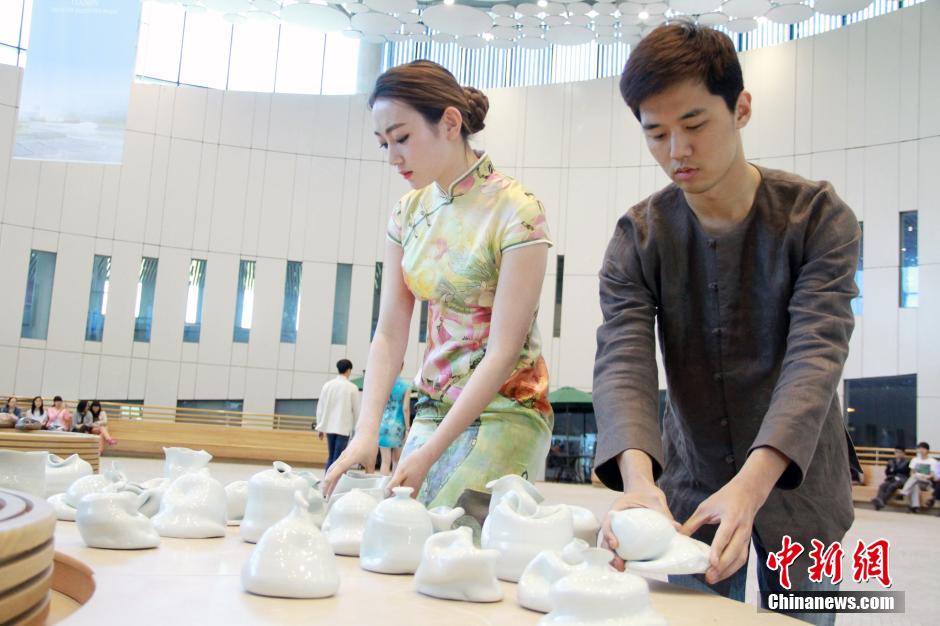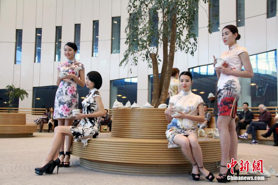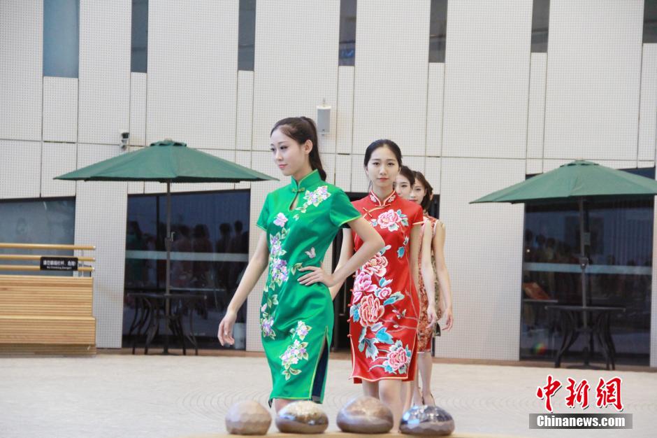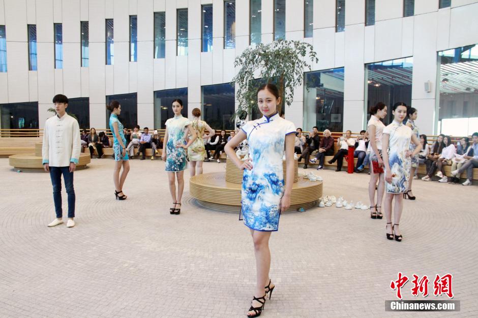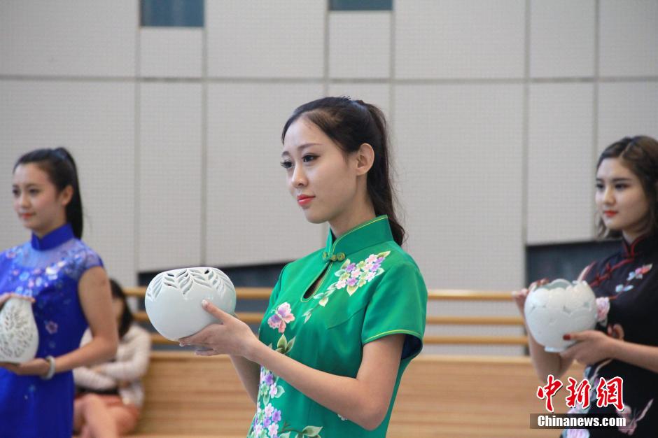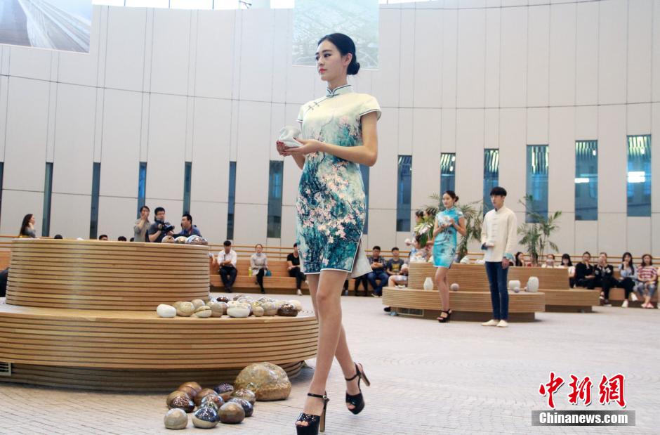 五輪をテーマにした陶磁器展が4日、天津のサマランチ記念館で行われた。天津工業(yè)大學(xué)服裝設(shè)計學(xué)部の學(xué)生たちは美しいチャイナドレスの作品で同展を応援するパフォーマンスを披露し、注目を集めた。中國新聞網(wǎng)が伝えた。(編集YH)
