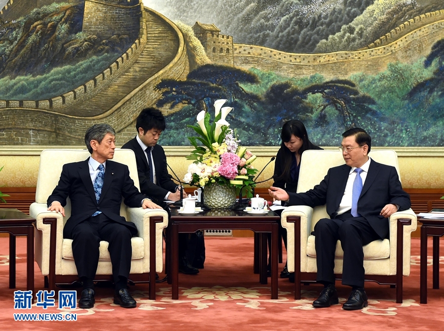 張常務(wù)委員長は「習(xí)近平國家主席は少し前にインドネシアで要請(qǐng)に応じて安倍首相と會(huì)談し、中日関係の取り扱いにおける大原則を明確に打ち出した。これは両國関係の改善と発展にとって重要な指導(dǎo)的意義を持つ。中日雙方は歴史を鑑として未來に向かう精神に基づき、平和?友好?協(xié)力という正しい方向を常に堅(jiān)持し、中日間の4つの基本文書の原則精神にしっかりと従い、両國関係の持続的改善を後押しする必要がある。日本側(cè)が責(zé)任ある姿勢で言動(dòng)を慎み、歴史など敏感な問題を適切に処理することを希望する。両國の立法機(jī)関、中國の全人代代表と日本の議員の意思疎通や交流の強(qiáng)化は理解の強(qiáng)化と共通認(rèn)識(shí)の拡大に資する。中日関係の改善と発展の推進(jìn)において日中友好議員連盟が一層の役割を発揮することを希望する」と表明した。