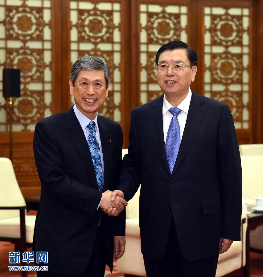 張徳江全人代常務(wù)委員長は5日、高村正彥會(huì)長を団長とする日中友好議員連盟訪中団と人民大會(huì)堂で會(huì)談した。