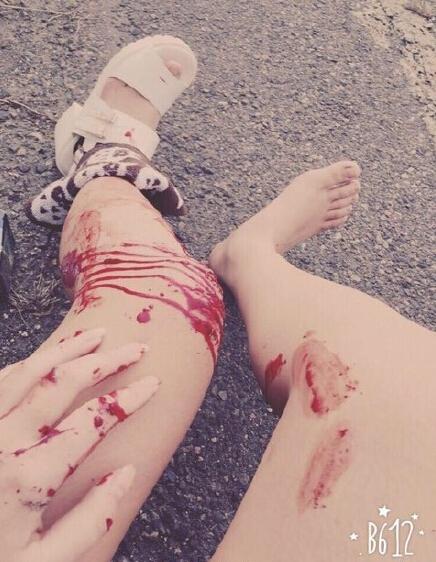 日本のある女性が自動(dòng)車事故に遭遇し、車から投げ出されて気を失った。しばらくして気づいた彼女はまず自分の足を?qū)懻娲橛挨?、さらにはフィルターで畫像の効果を上げることも忘れていなかった。(編集YH)