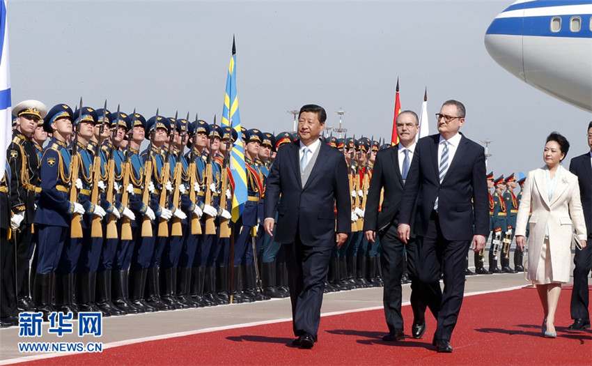 ロシア政府は空港で歓迎式典を行い、習(xí)主席はロシアの陸???軍の儀仗隊(duì)を巡閲した。(編集KS)