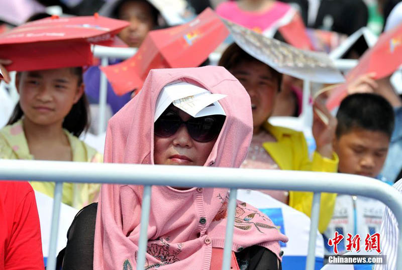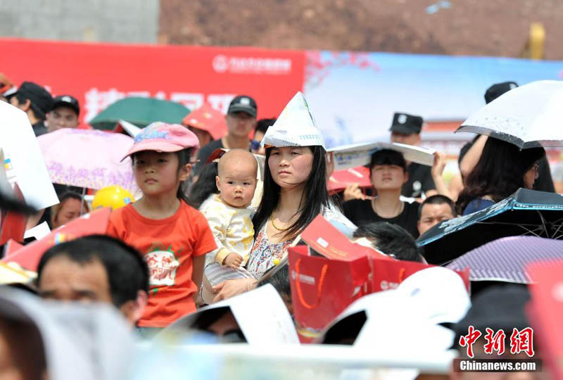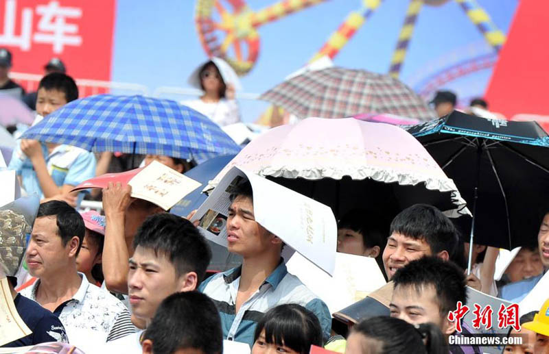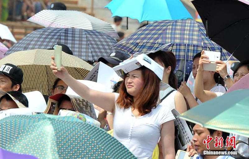 中國の有名俳優(yōu)、馮紹峰(ウィリアム?フォン)が10日午前、江西省南昌市の萬達城に姿を見せ、多くのファンが集まった。南昌市は同日の最高気溫が30℃に達し、會場で待ち構(gòu)えていたファンたちは強烈な日差しの下、配られたチラシを折って様々な「帽子」にして日焼けを防いでいた。中國新聞網(wǎng)が伝えた。(編集YH)