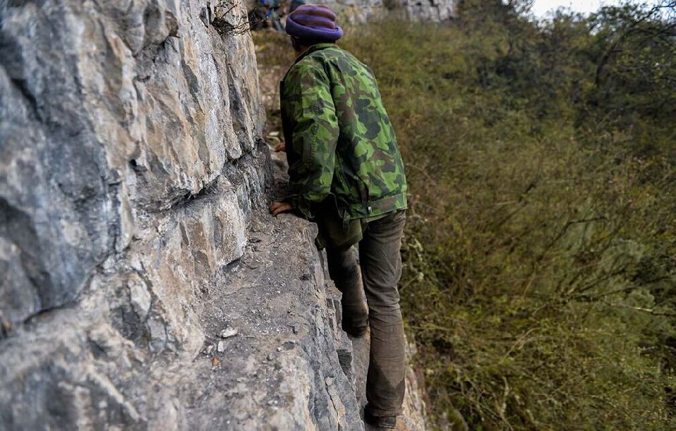 片側(cè)は切り立つ玄武巖の斷崖絶壁、片側(cè)は底の見(jiàn)えない大峽谷で、幅20センチに満たない小道を進(jìn)むと肝が冷えるようだ。しかし四川省雅安市漢源県永利彝族郷帽殻山麓の住民たちは200年以上の間、毎年5月になるとツバメの巣や薬草を採(cǎi)集するため、危険を冒してこの険しい道を行き來(lái)する。華西都市報(bào)が伝えた。