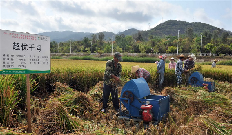 中國「ハイブリッドイネの父」と呼ばれる中國工程院の袁隆平院士が品種選択?栽培育成を擔(dān)當(dāng)した新型ハイブリットイネ「超優(yōu)千號」の、海南省三亜市海棠區(qū)スーパーイネ研究基地における百ムーモデルプロジェクトが5月9日、海南省農(nóng)業(yè)庁の専門家チームによる現(xiàn)場検査に合格した。1ムー(6.667アール)あたりの収穫量は941.79キロに達(dá)し、海南省のイネの収穫量としては最高記録を樹立、歴史的な突破を?qū)g現(xiàn)した??茖W(xué)網(wǎng)が伝えた。