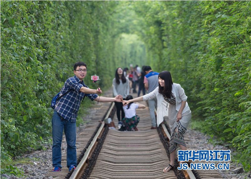 夏の訪れにともない、昨年インターネットで「愛(ài)のトンネル」という美稱(chēng)で人気を集めた南京市江寧區(qū)にある鉄道の線路は、両側(cè)の豊かな植生が再び新緑のシーズンを迎え、多くの人が訪れている。新華網(wǎng)が伝えた。(編集YH)