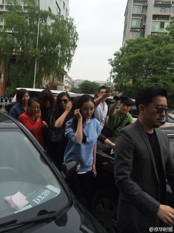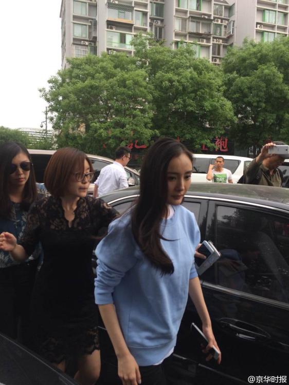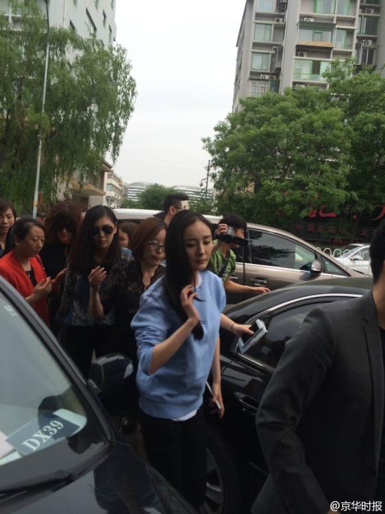 このことが論議を呼ぶ中で14日、楊冪が関係者にともなわれて通報(bào)のため北京?朝陽(yáng)門派出所を訪れるとともに、メディアの取材に応じた。