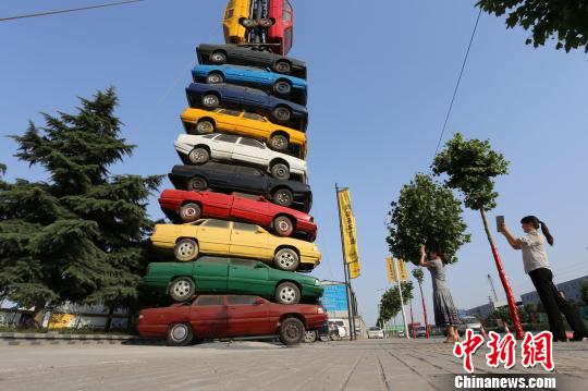 鄭州の街角に廃車の「7色の自動車の塔」 (2)