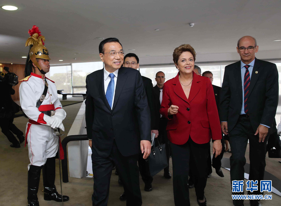 李克強(qiáng)総理は現(xiàn)地時間19日午前、ブラジルのルセフ大統(tǒng)領(lǐng)とブラジル大統(tǒng)領(lǐng)府で會談した。