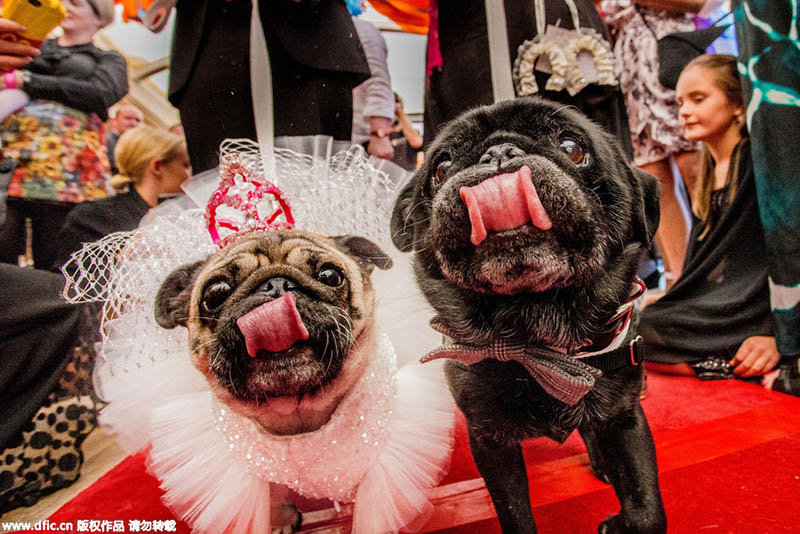 新婦のジャスミンと、新郎のジャスパーは2年前、パグ犬の保護(hù)?里親募集センターで出會(huì)ってから一時(shí)も離れたことが無いという。2匹は350人のゲストと、パグ犬60匹に見守られながら、永遠(yuǎn)の愛を誓った。人民網(wǎng)が海外メディアの報(bào)道を引用して伝えた。(東方IC が畫像の著作権所有。転載禁止)(編集SN)