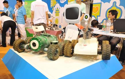 會(huì)場の一角には、2臺(tái)のロボットカーが並べられていた。一見したところ軍事用の「地雷除去機(jī)」のようだが、実際には探鉱用ロボットだ。この2臺(tái)のロボットは金屬製で、鋼の體を持つ。炭鉱內(nèi)の酸素濃度などを調(diào)べ、事故発生時(shí)には炭鉱內(nèi)の具體的な狀況を調(diào)べることができる。