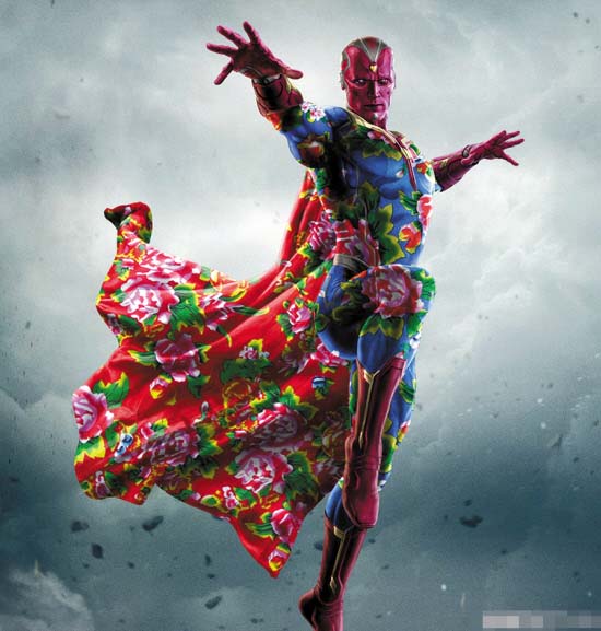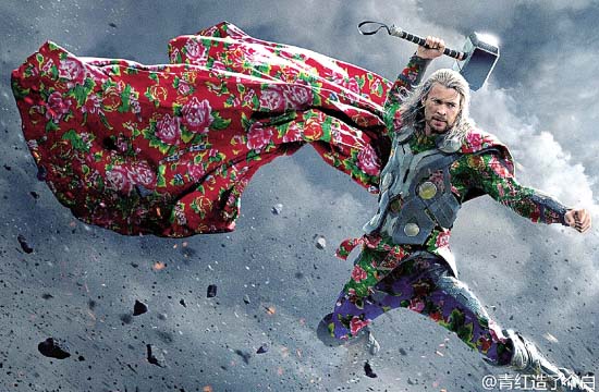 「飯(Fan)制」ポスターとは、ファンが作ったポスターを指す。歐米では「飯制」ポスターが流行しており、中にはオフィシャル版よりも美しくアイデアあふれる有名な「飯制」ポスターもある。中國(guó)にも「飯制」ポスターがあり、「青紅造了個(gè)白」さんによる「東北版アベンジャーズ」シリーズは典型的な「飯制」ポスターと言える。しかし一般的な「飯制」ポスターとは異なり、「青紅造了個(gè)白」さんは現(xiàn)在流行の要素を巧みに結(jié)びつけ、張馨予(チャン?シンユー)がカンヌ映畫(huà)祭のレッドカーペットで著ていた衣裝の東北地方獨(dú)特のデザインを使い、獨(dú)特のユーモラスなムードをかもし出している。(編集YH)