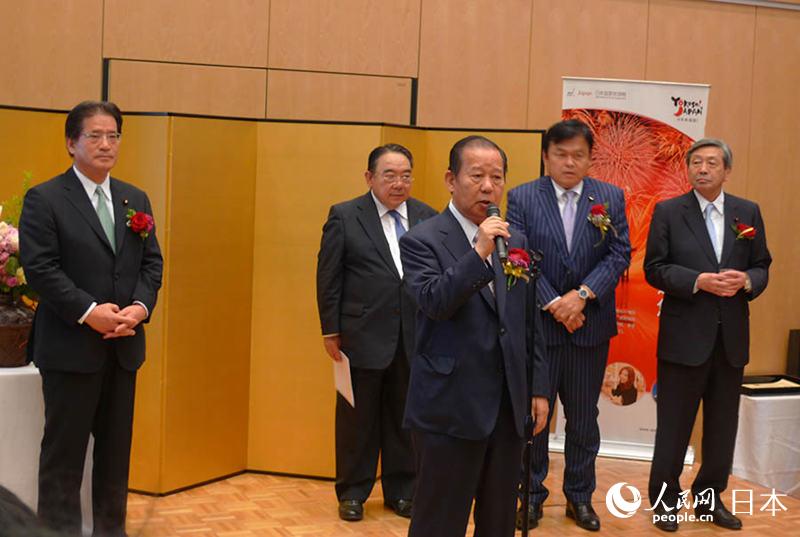 二階総務(wù)會長もあいさつし、來場者に歓迎の意を表するとともに、「日本に遊びに來てください」とアピールした。