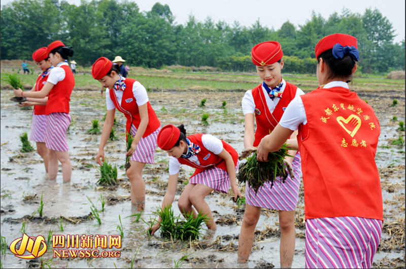 田植えの季節(jié)がやって來た。四川省崇州市永安村にある張衛(wèi)國さんはじめ農(nóng)民10人が所有する水田では22日、腰をかがめて田植えをしているのは農(nóng)民ではなく、赤い制服を著た成都東星航空観光専修學(xué)院で學(xué)ぶキャビンアテンダント(CA)の卵達(dá)、という情景がみられた。未來のCAはスカートの裾をたくし上げ、白くて長い美腳で泥の中を動き回り、「沼みたい」と言いながら、注意深く苗を植えた。だがどんなに気を付けていても、數(shù)歩歩いただけで泥の中に尻餅をついてしまい、あっという間に「泥をかぶった麗人」に変身する人もいた。四川新聞網(wǎng)が伝えた。(編集KS)