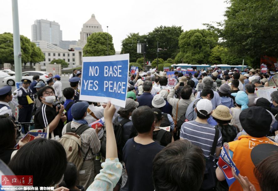 米軍基地建設(shè)に反対 日本の民衆(zhòng)が國(guó)會(huì)を包囲