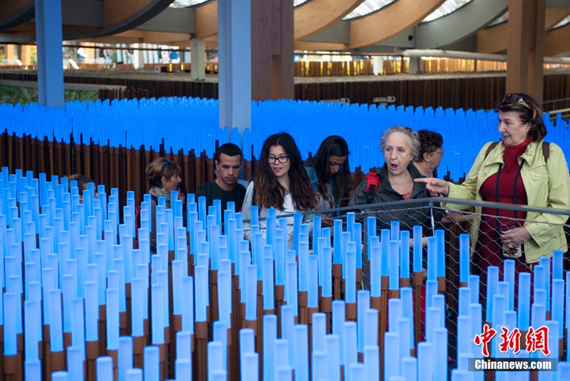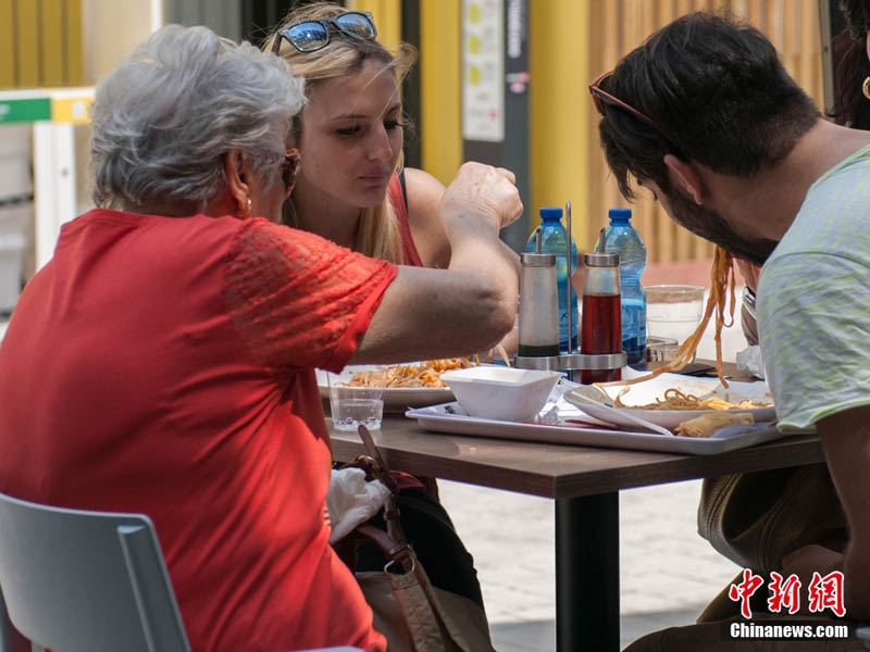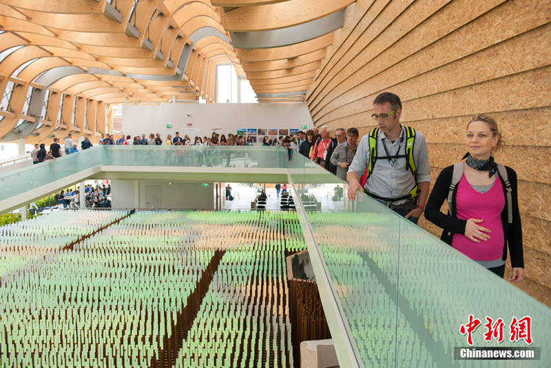 イタリア?ミラノの2015年ミラノ國際博覧會會場では現(xiàn)地時間の26日、金色の麥の波をデザインした中國館が多くの來館者を集めていた。館內に設置された2萬本以上のLEDの発光する「麥の穂」で作られた「希望の田野」を、來館者は攜帯電話で次々と撮影していた。館內の東洋的な要素だけでなく、館外の中國料理ホールも多くの外國人來館者の人気を集めている。來館者たちは中國の食事を楽しみ、一番人気なのは餃子と炒河粉(ビーフンの料理)だった。中國新聞網(wǎng)が伝えた。(編集YH)