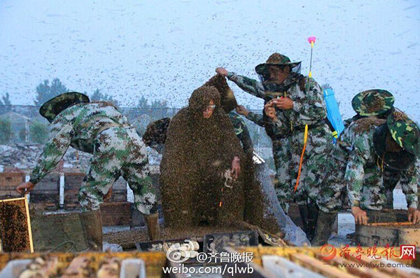 「秦山の養(yǎng)蜂王」と呼ばれる山東省泰安市在住の養(yǎng)蜂家?高丙國氏は25日、體に最も多く蜂をとまらせるギネス世界記録に挑戦し、見事成功した。當(dāng)日、高丙國氏の身體は、100萬匹のミツバチに覆われた。ミツバチの重量は、計(jì)109.05kg(蜂の數(shù)の計(jì)算方法1kg=1萬匹)に上り、自身が作った85.5キロの世界記録を大幅に更新した。齊魯晩報(bào)が伝えた。(編集MZ)
