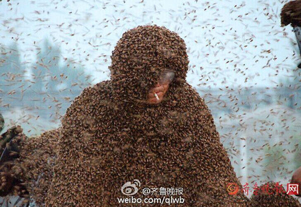 「秦山の養(yǎng)蜂王」と呼ばれる山東省泰安市在住の養(yǎng)蜂家?高丙國氏は25日、體に最も多く蜂をとまらせるギネス世界記録に挑戦し、見事成功した。當(dāng)日、高丙國氏の身體は、100萬匹のミツバチに覆われた。ミツバチの重量は、計(jì)109.05kg(蜂の數(shù)の計(jì)算方法1kg=1萬匹)に上り、自身が作った85.5キロの世界記録を大幅に更新した。齊魯晩報(bào)が伝えた。(編集MZ)