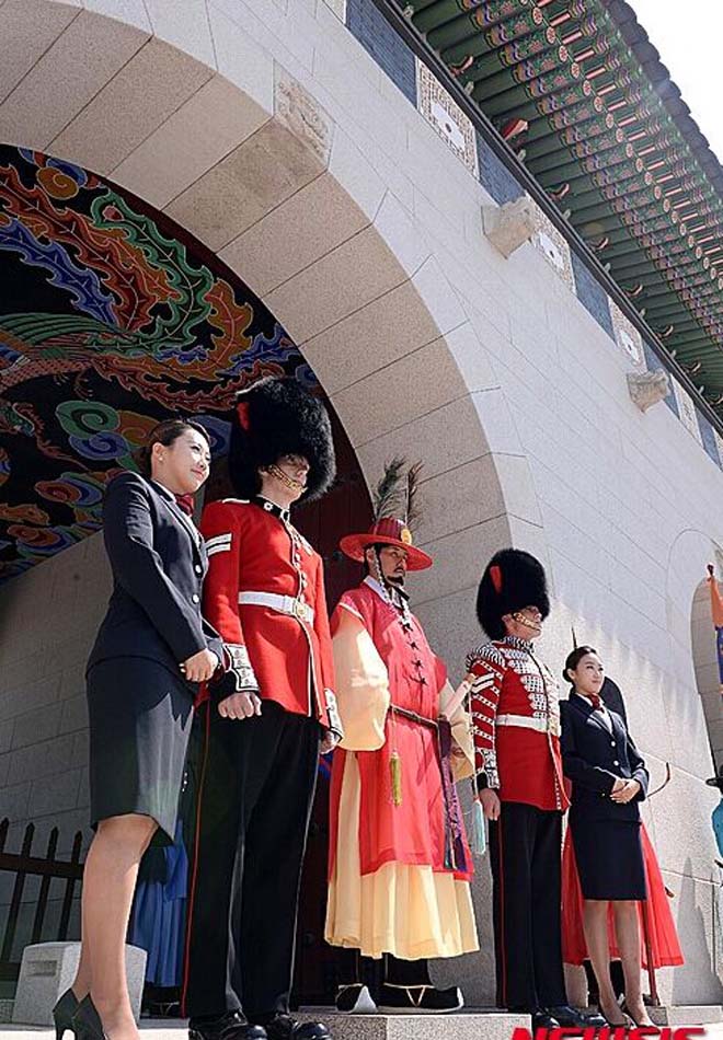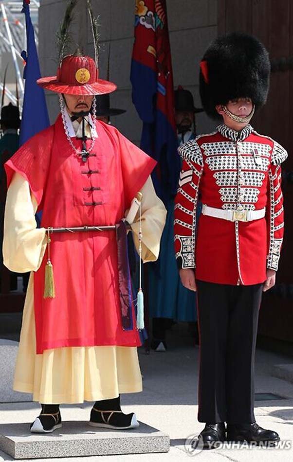 英國の近衛(wèi)兵が韓國故宮に登場
