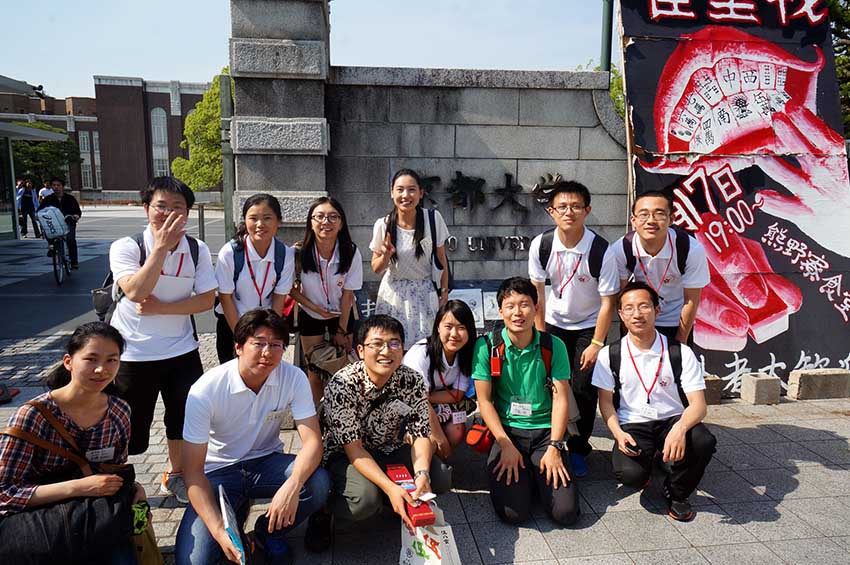 同日の午後、中國の大學生はノーベル賞受賞者を數(shù)多く輩出している日本の名門大學、京都大學を訪問し、同大學の學生らと交流を深めた。両國の青年は共にテーブルを囲み、人類が現(xiàn)在直面している環(huán)境保護やエネルギー、農(nóng)業(yè)生産、食品安全、少子高齢化、福祉、大學教育の問題などについて活発な討論を行った。討論を通し、両國の青年の間には相互の理解や友情が促進された。日本の大學生の誠実で熱心な人柄や問題分析の鋭さ、自主獨立の精神は中國の大學生に深い印象を殘した。
