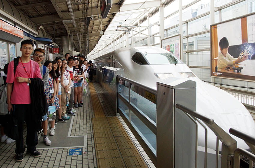 中國の大學生は28日、日本で有名な観光地、嵐山や世界遺産に登録されている金閣寺を見學した。その後、新幹線に乗って関東地方へ向かい、最初に靜岡県の溫泉地、熱海を訪れ、日本の溫泉文化を體験した。