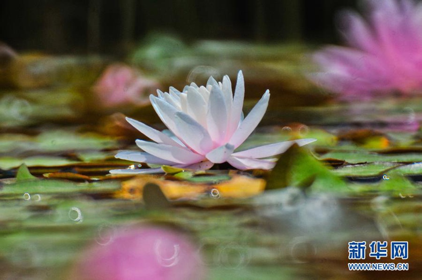 青島世博園ではこのほど睡蓮が満開のシーズンを迎え、様々な品種の睡蓮が水面で咲き誇る姿を見せた。新華社が伝えた。(編集YH)