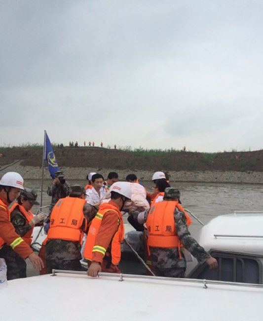 1日、南京から重慶へ向かっていた大型客船が長(zhǎng)江中流の湖北省監(jiān)利水域で転覆した。2日午後3時(shí)5分、重慶の乗組員?燃料擔(dān)當(dāng)者である21歳の男性陳書涵さんは、酸素マスクを裝著された姿で救出された。