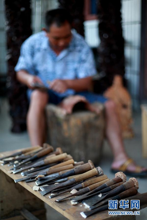安順木彫マスクは中國の無形文化遺産である貴州安順地戯の公演における重要な道具だ。その彫刻技法は複雑かつ精緻で、色彩は色鮮やか、スタイルは寫実と誇張とを兼ね備えている。マスクは滑らかな質(zhì)感の木材を使い、數(shù)十種類の様々な道具を使い分け、伐採から製材、彫刻、色付けといったプロセスを経て作られる。貴州省安順市西秀區(qū)には代々木彫を行ってきた家柄で、16歳から安順木彫マスクの製作に攜わってきた職人の楊正洪さんが暮らしている。50代の楊さんはマスクの彫刻に30年以上攜わり、先祖から伝わる技法を継承すると同時(shí)に、長年にわたり革新を続け、伝統(tǒng)的な彫刻技法と安順の民間蕓術(shù)を融合させ、神秘的な地戯のマスク彫刻と現(xiàn)代的な美學(xué)の概念と融合させ、様々な特徴を持つマスクをより生き生きとした獨(dú)特の蕓風(fēng)を備えるものにし、この伝統(tǒng)文化の技を継承させている。貴州安順木彫マスクの代表的な継承者として、楊さんが彫刻するマスクは優(yōu)れた技法と濃厚な地方色を湛えて好評(píng)を集め、マスク愛好家の人気を集めている。新華社が伝えた。(編集YH)