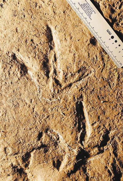 新たに鑑定されたこの大型水鳥の足跡は約180個あり、2007年に発見された。當(dāng)初は獣腳類の小型恐竜のものと判斷されていた。この足跡の研究者、中國地質(zhì)大學(xué)の博士課程在學(xué)中の邢立達氏は、「體型と比べ、足跡の歩幅が狹いことが分かる。獣腳類の小型恐竜であれば、歩幅はより広い。またこの足跡はやや內(nèi)向きで、八の字の內(nèi)股のようになっているが、獣腳類の足跡は通常ならば直線だ」と述べた。これらの特徴により、この足跡が鳥類のものと判斷された。