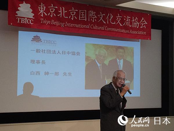 あいさつする日中友好協(xié)會の白西伸一郎理事長