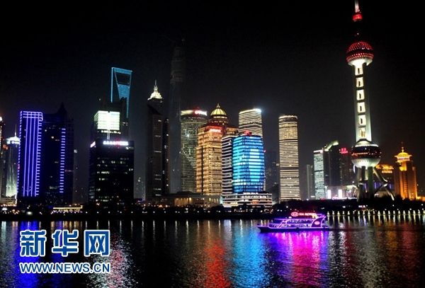 | 上海市陸家嘴の東方明珠の隣にある中國金融情報センターから見た夜景。 |